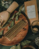 incenso natural de pau-santo em vara de bambu, enrolado à mão.