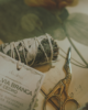 tocha de folhas secas de cedro enrolada à mão e sálvia branca, em fio de algodão.